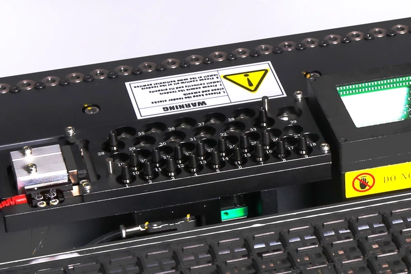 El sistema de cambio automático de boquillas con matriz de 39 estaciones optimiza drásticamente la velocidad de montaje y la flexibilidad operativa, minimizando la intervención manual y los tiempos de configuración.