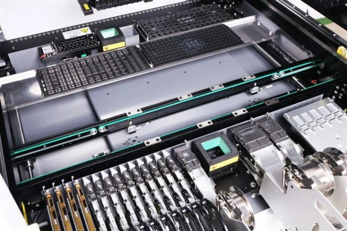 Alimentadores Inteligentes (Smart Feeders): Compatibilidad con alimentadores neumáticos y eléctricos de alta precisión que garantizan una recogida de componentes fluida y sin errores.